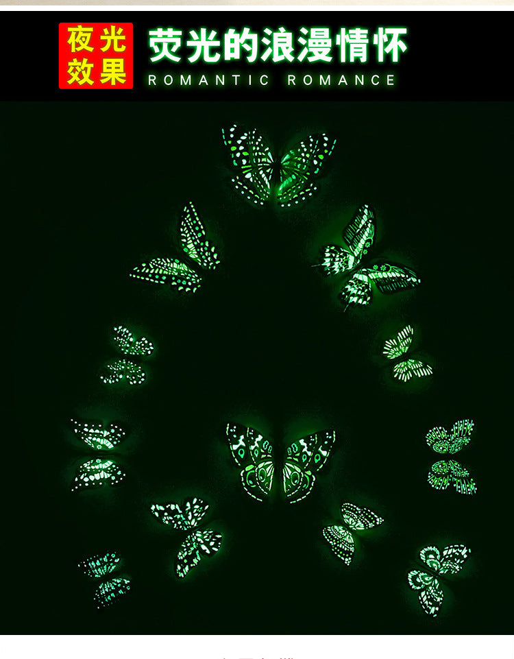 12pcs PVC 3d diy Butterfly Luminous glow in dark Design Decal Magnetic magnet sticking double feather wall stickes home Decor
