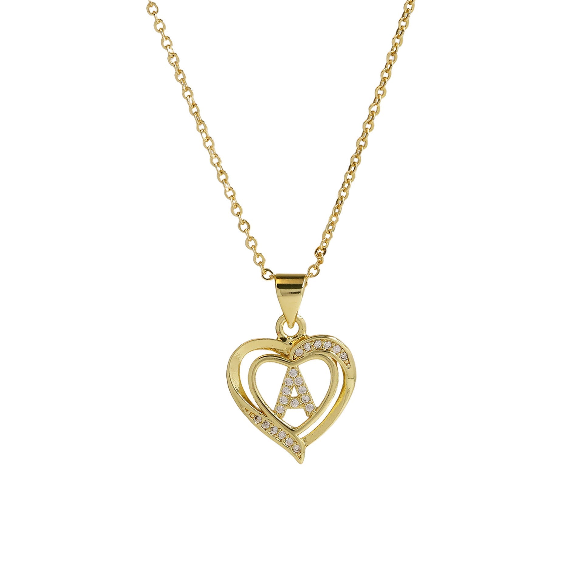 18K Brass Peach Heart 26 English Letters Necklace
