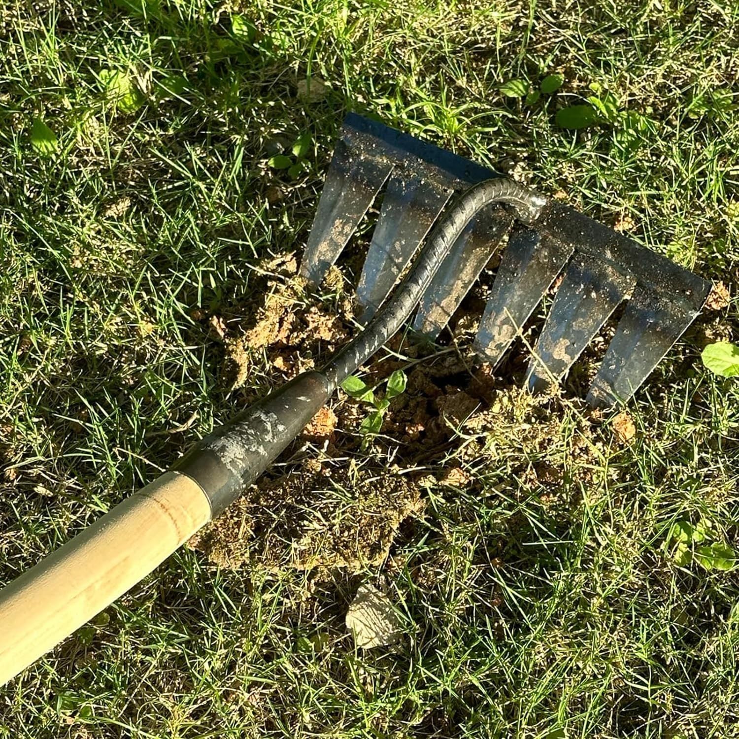 - High Quality Material: The garden rake is made of high-quality carbon steel. durable. not easy to break. the tines has a good sharpness. making your weeding work easier.