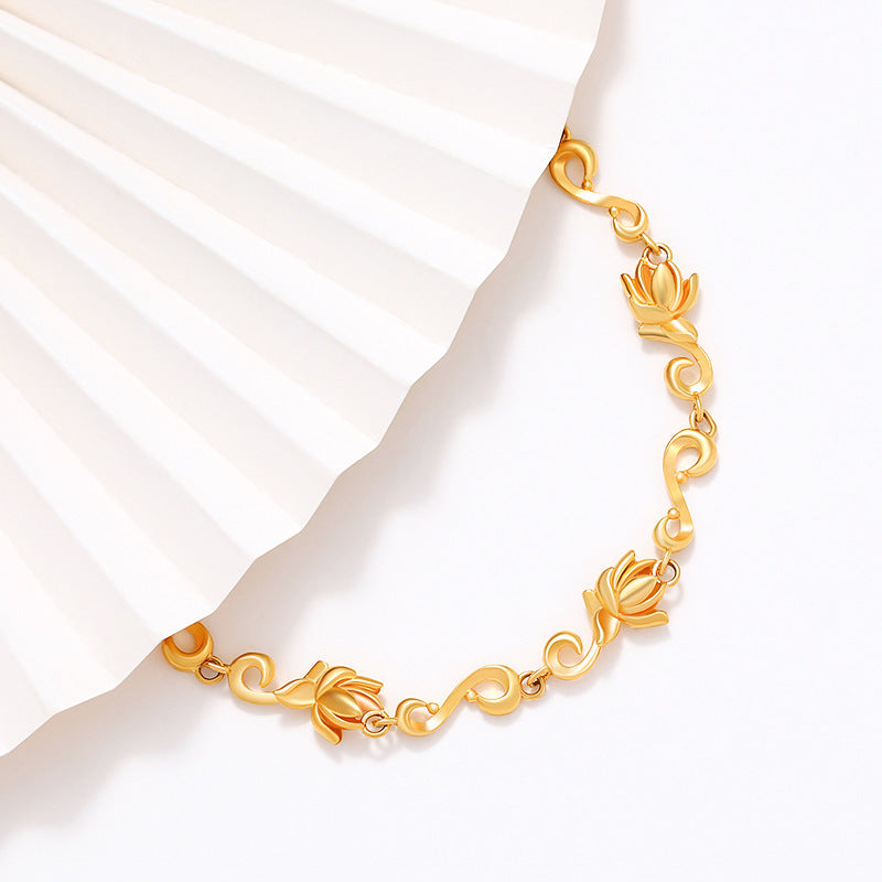 Alloy Plated Gloden Lotus Bracelet Girls High Sense Niche Retro