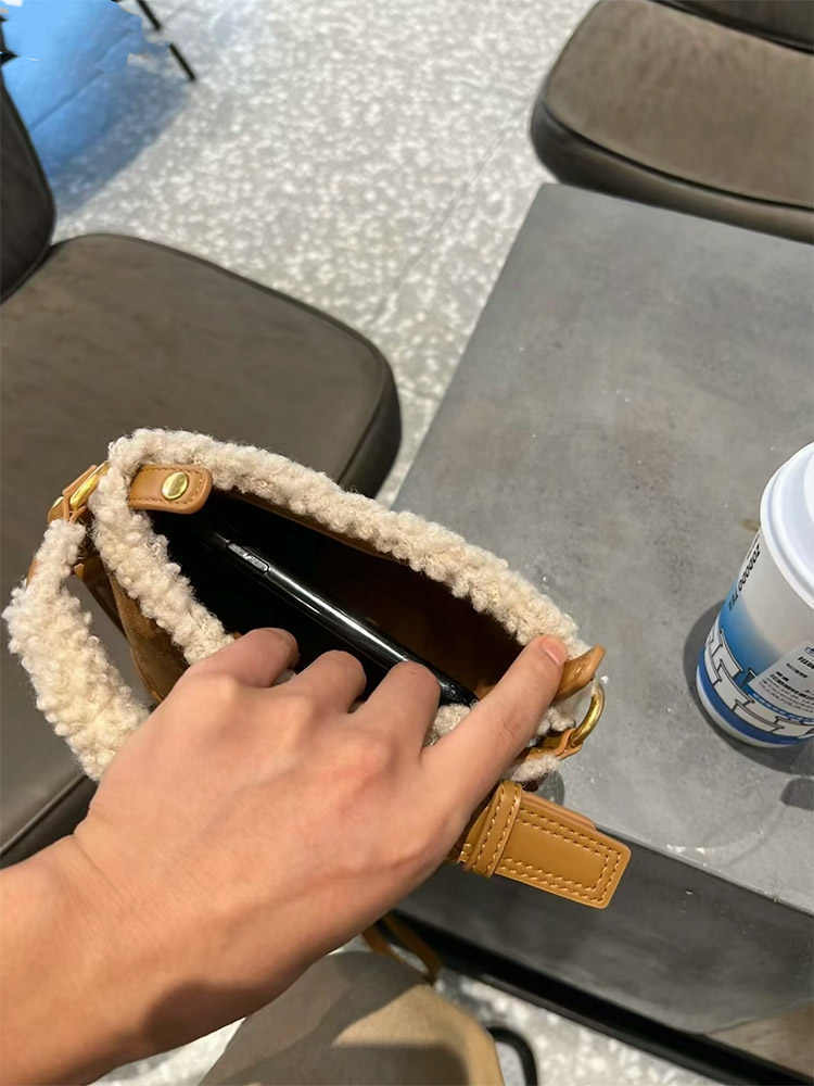 Autumn And Winter Lamb Wool Mini Bucket Bag