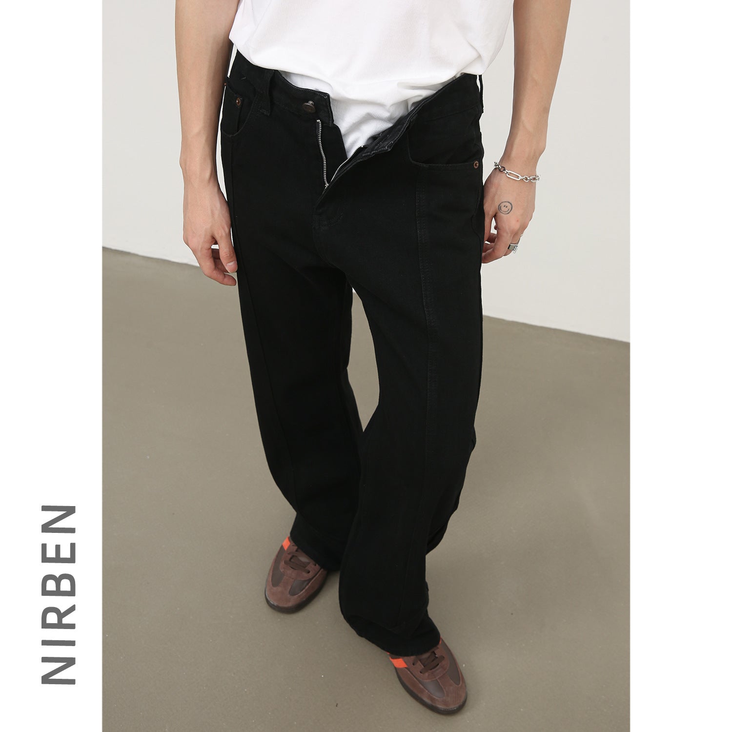 Black Weila Jeans Men's Loose Straight American Style