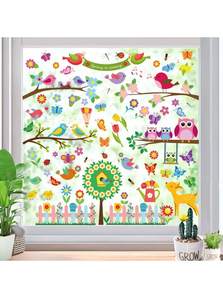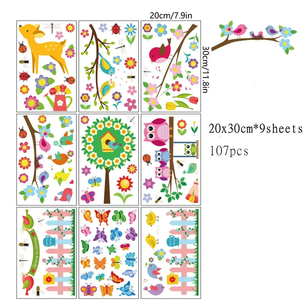 Cartoon Bird Branch Flower Butterfly Wall Sticker