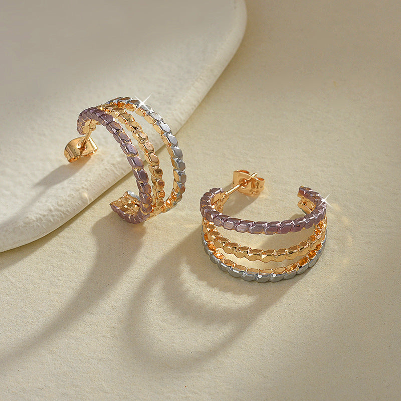 Cold Earrings Colorful Oil Necklace Multi-layer C- Shaped Simple