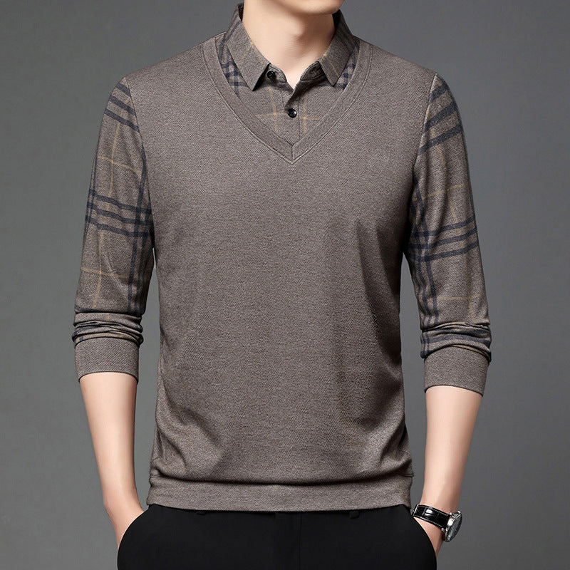 Fake Two-piece Lapel Long-sleeved Men's T-shirt