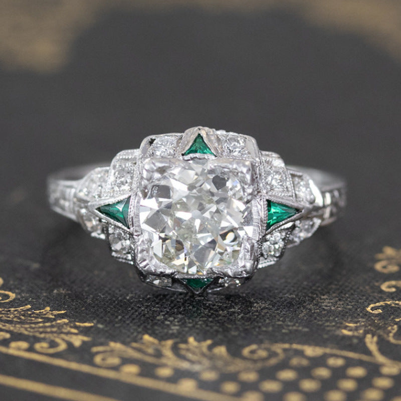 Fashion Retro Emerald Zircon Ring For Women