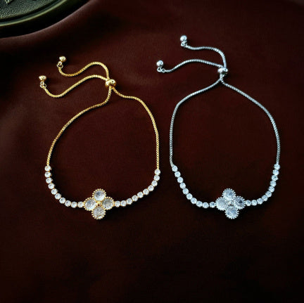 Four-petal Flower Zircon Bracelet Minority All-match Bracelet