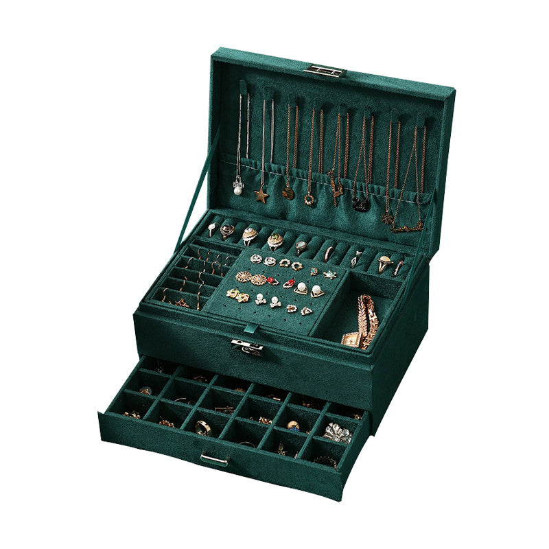 Household Large-capacity Three-layer Flannel Jewelry Box With Lock