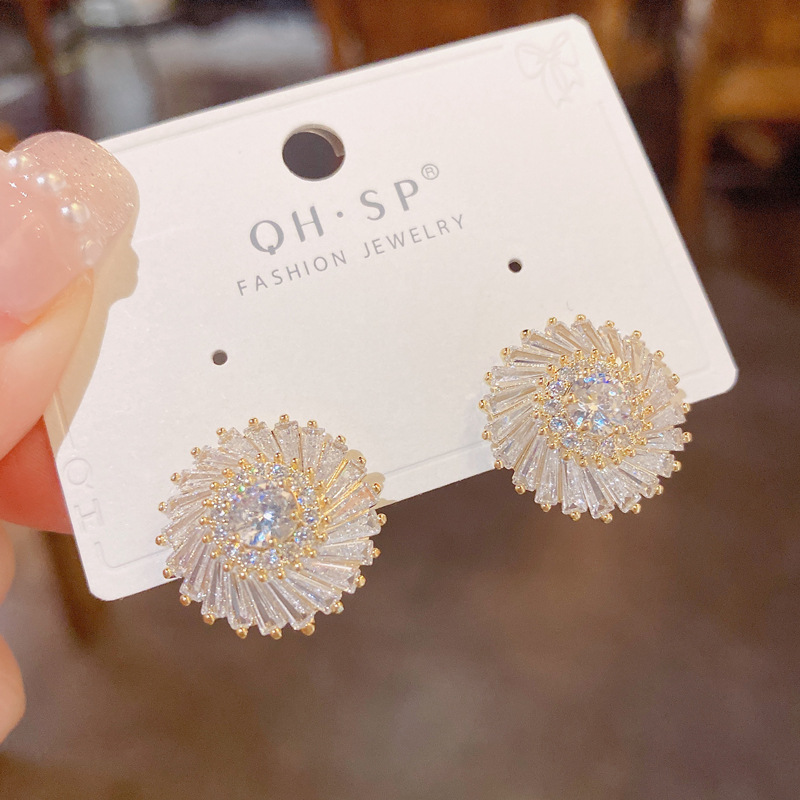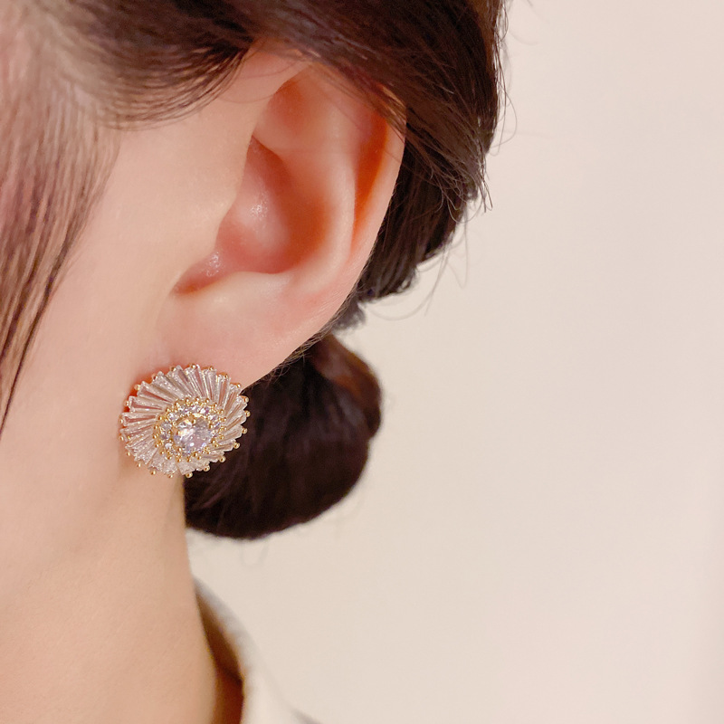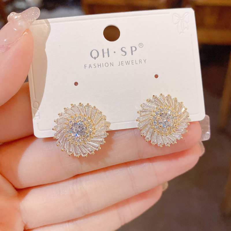 Light Luxury Refined Zircon Sun Flower Ear Studs