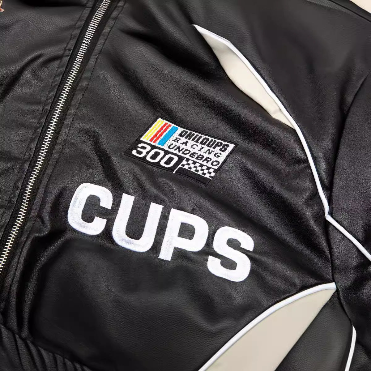Loose American Couple Embroidered Motorcycle PU Jacket