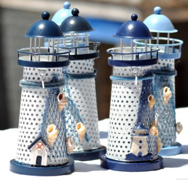 Mediterranean style medium iron lighthouse candlestick iron tabletop candlestick