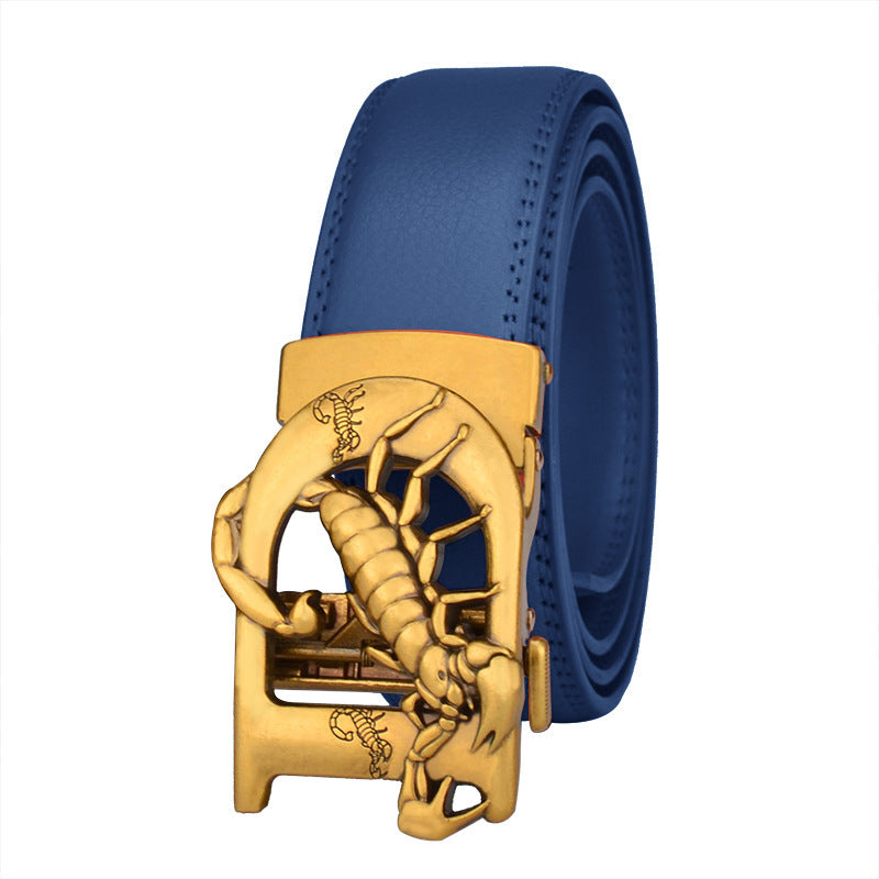 Men's Automatic Leather Bronze Vintage Buckle Cowhide Belt
