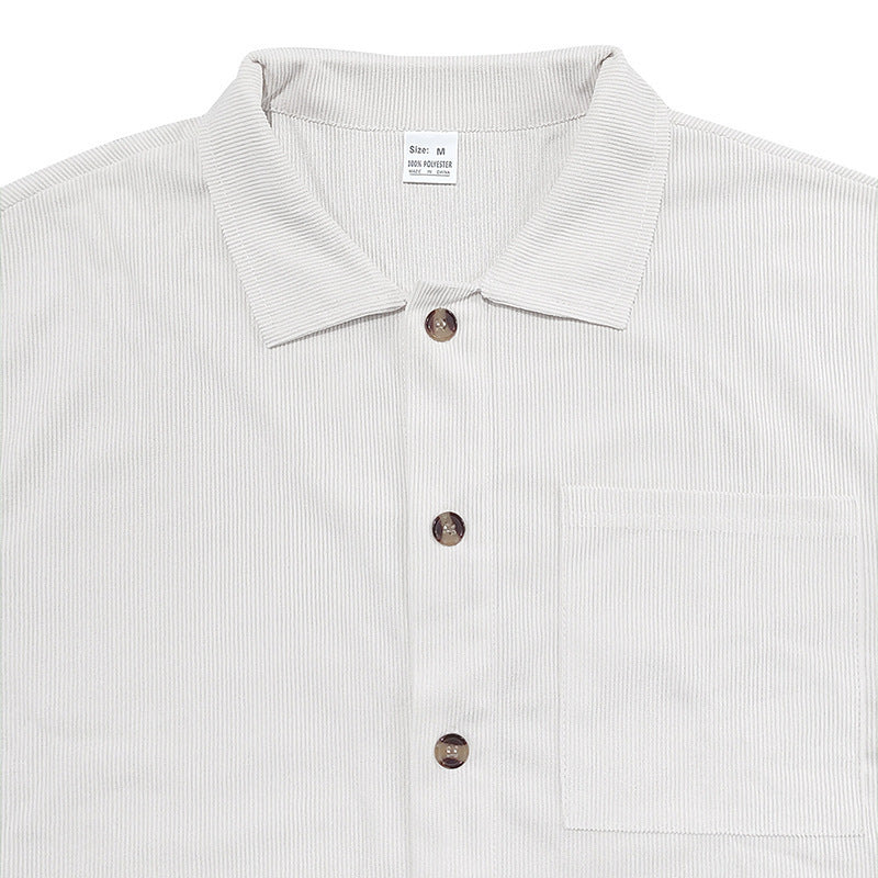 Men's Lapel Cardigan Shorts 2 Pieces Suit Summer Solid Color Vertical Stripes Short Sleeve Shorts