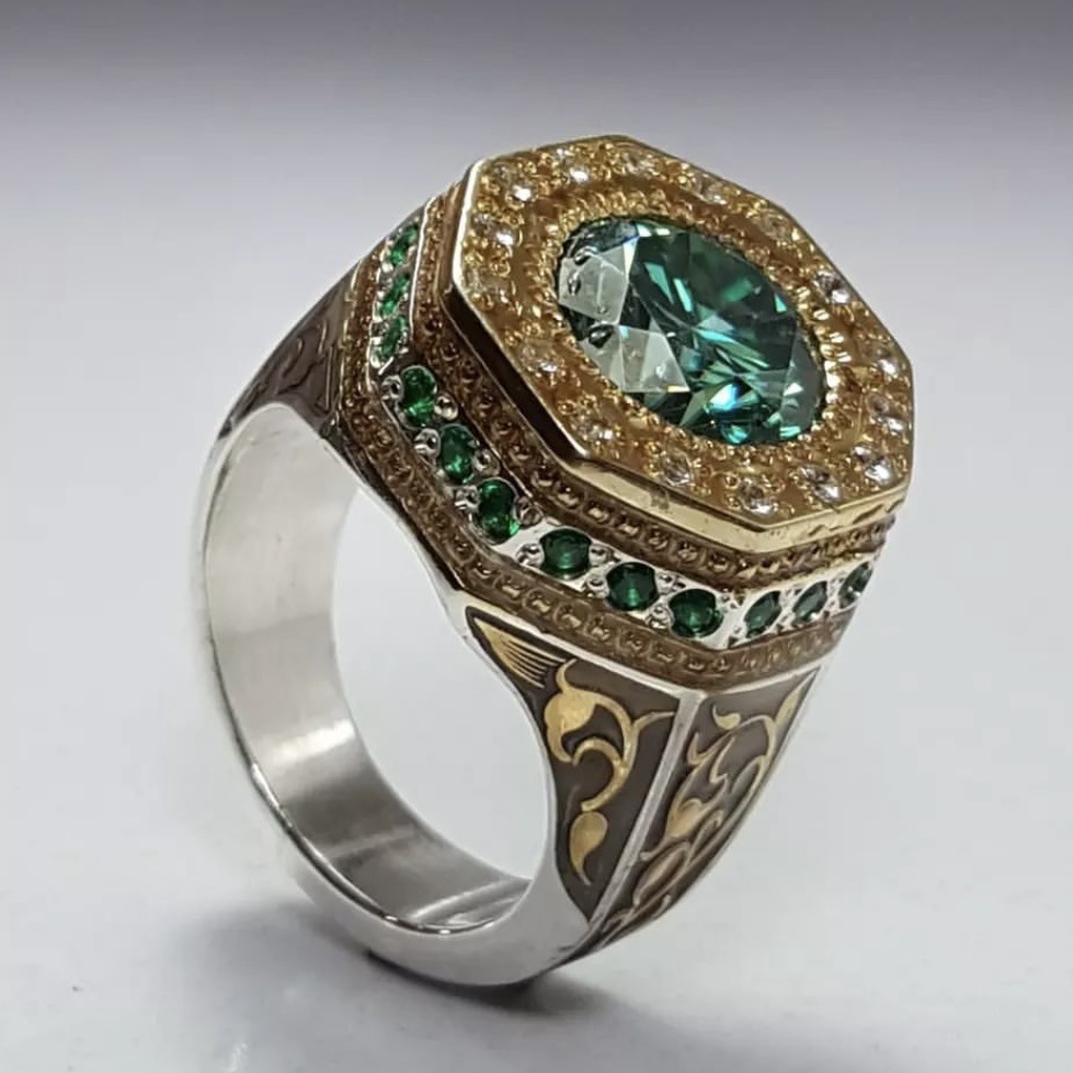 Men's Ornament Popular Retro Totem Two-tone Ring