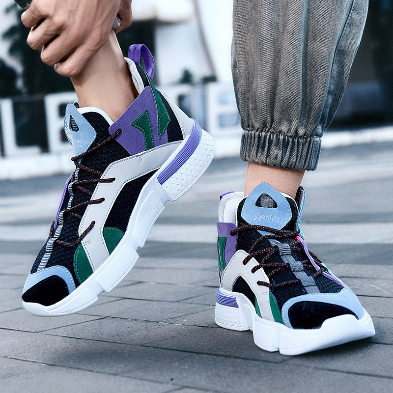 Men's Summer Plus Size Flyknit Breathable Mesh Surface High-top Board Shoe