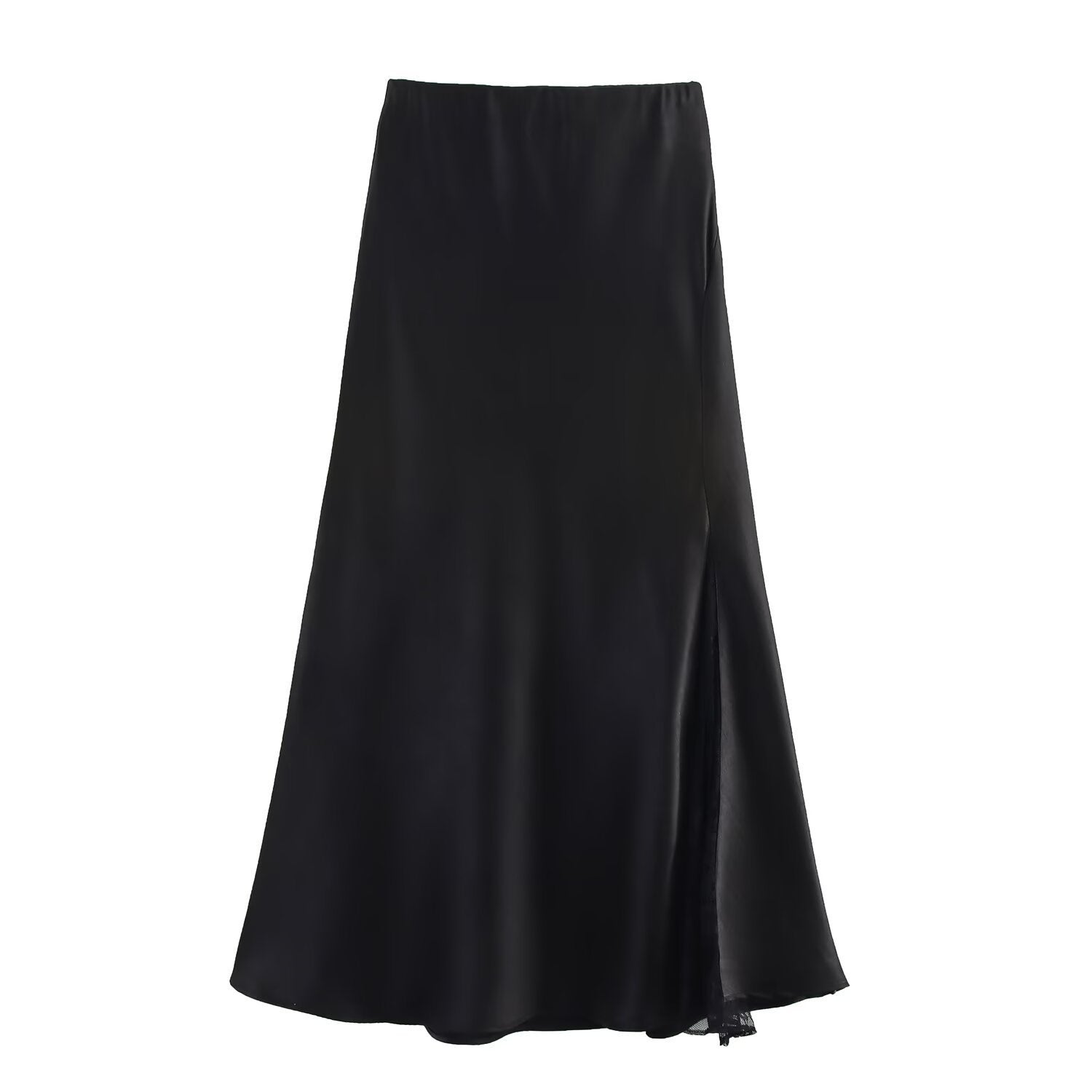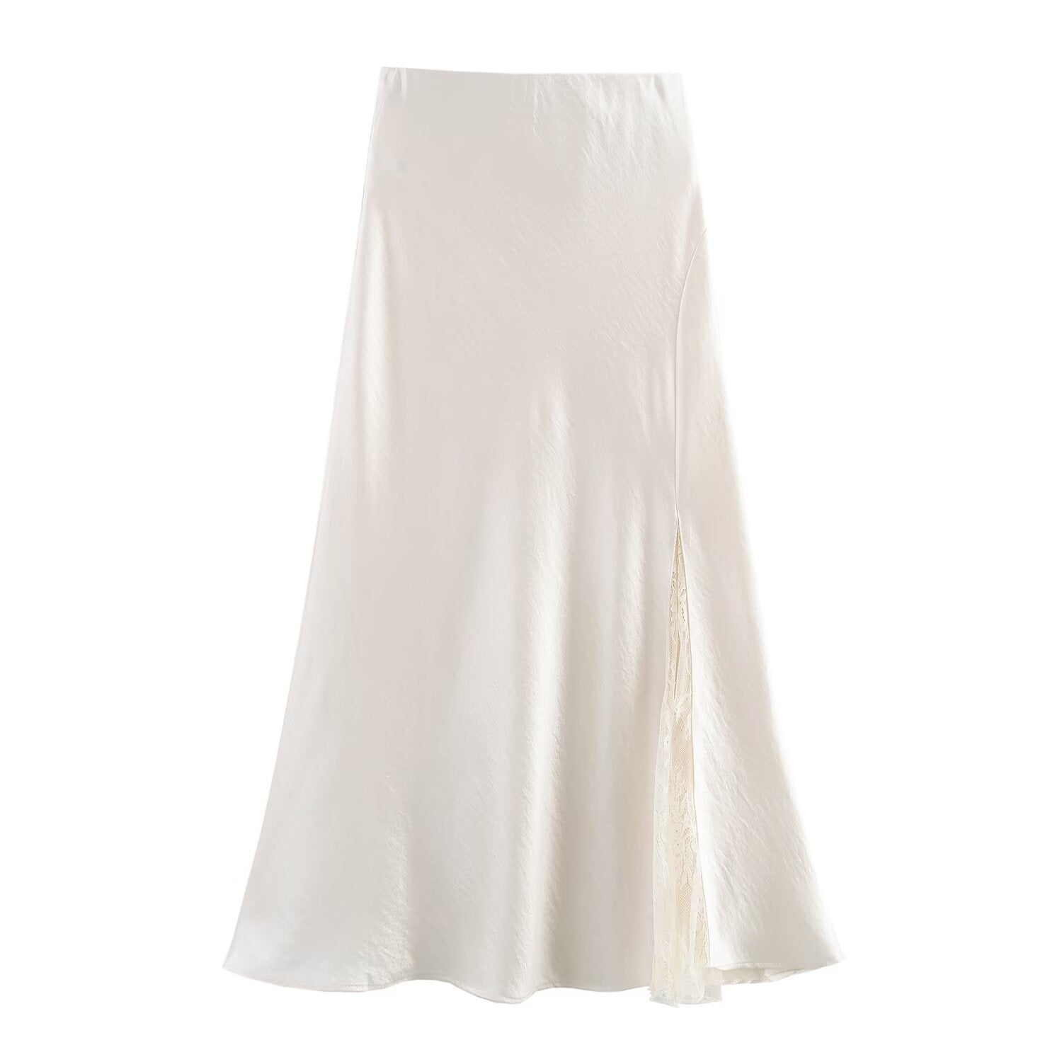 One-side Lace Satin Fishtail Skirt Long Skirt