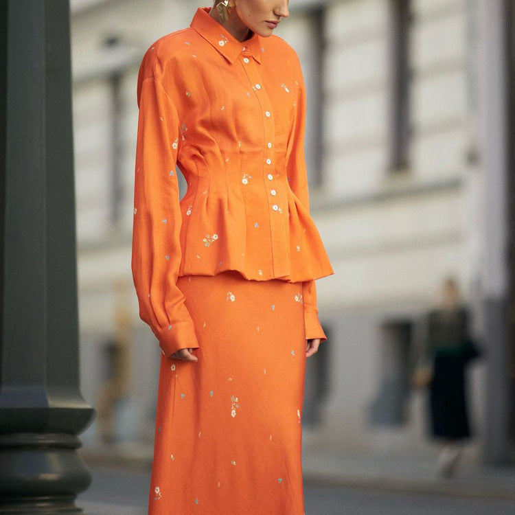 Printed Long-sleeved Shirt Fishtail Skirt Suit