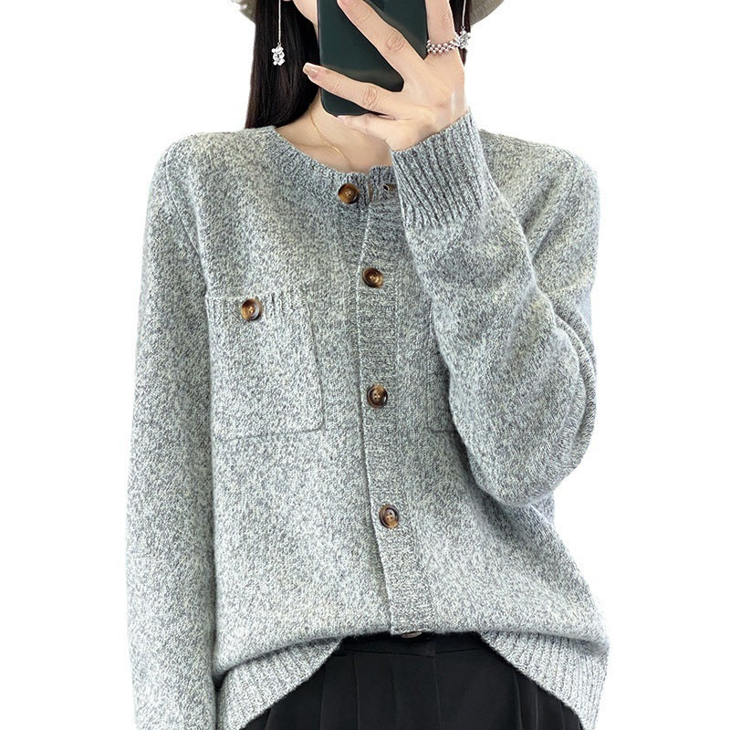 Round Neck Fancy Loose Slimming Long Sleeves Wool Base Shirt