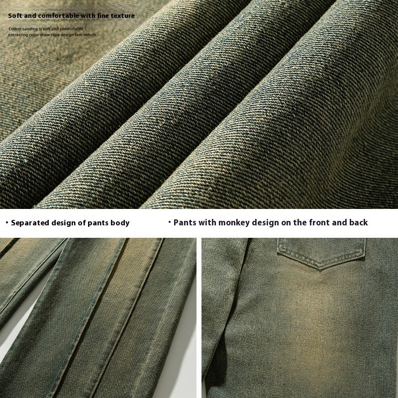Split Structure American High Street Jeans Autumn Three-dimensional Stitching Design