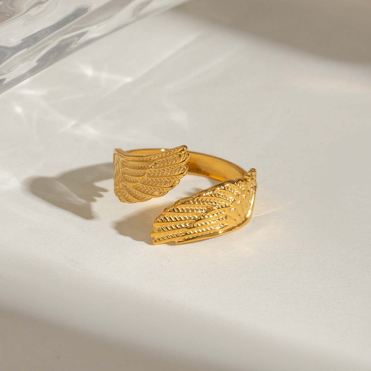 Stainless Steel Peace Dove Feather Wings Open Ring