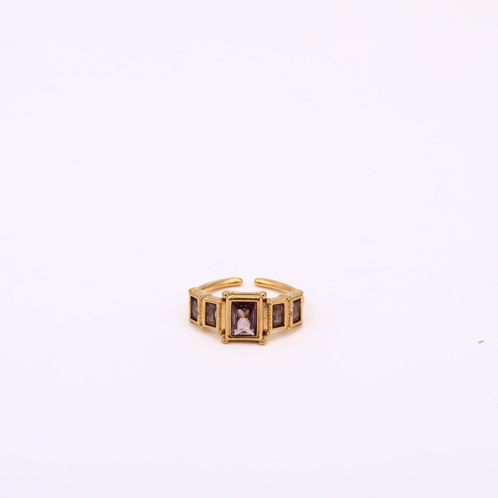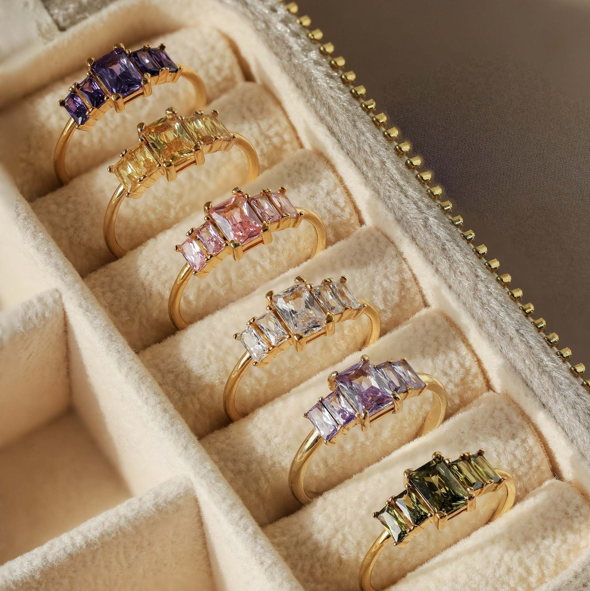 Titanium Steel Color Retaining European And American Color Zircon 12th Birthday Stone Ring