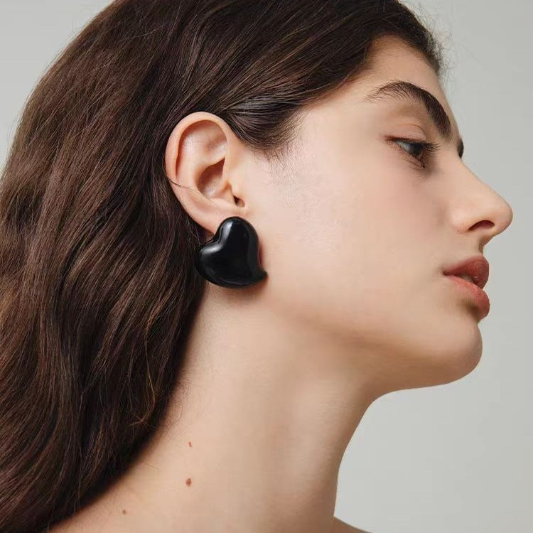 Vintage Cream Love Enamel Glaze Stud Earrings