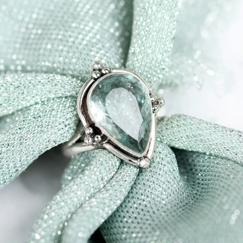 Water Drop Aquamarine Ring Popular Simplicity Classical Pear-shaped Palace Style