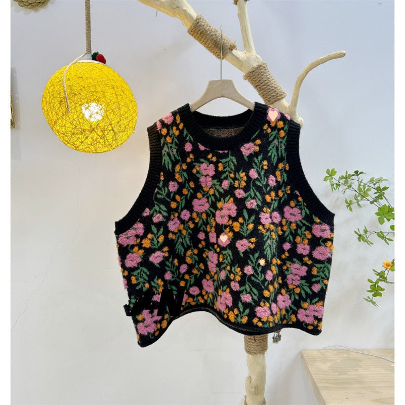 Western Style Youthful-looking Peach Blossom Knitted Vest