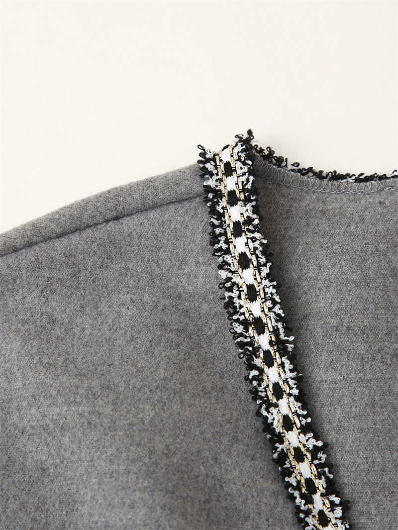 Women's Clothing Fashion Long Sleeve Waistband Reversible Woolen Jacket