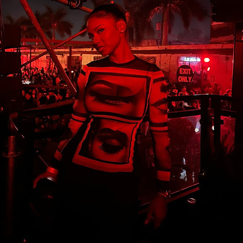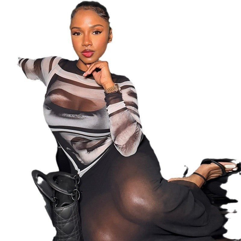 Women's Clothing Mesh Floral Print Casual Slim Fit Fashion Tops