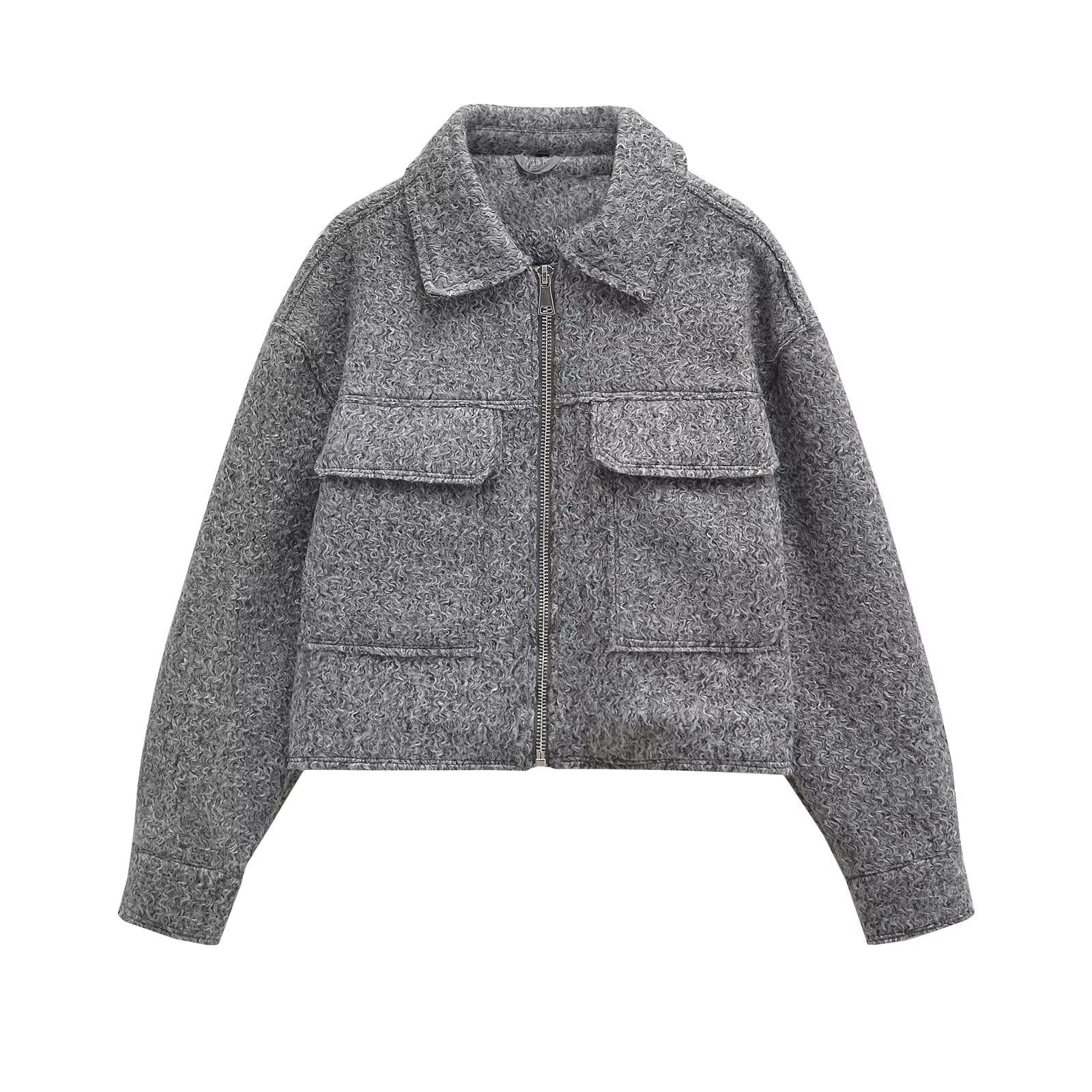 Women's Fashion Polo Collar Pocket Long-sleeved Coat