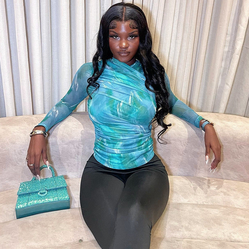 Women's Fashion Print Top Long Sleeve