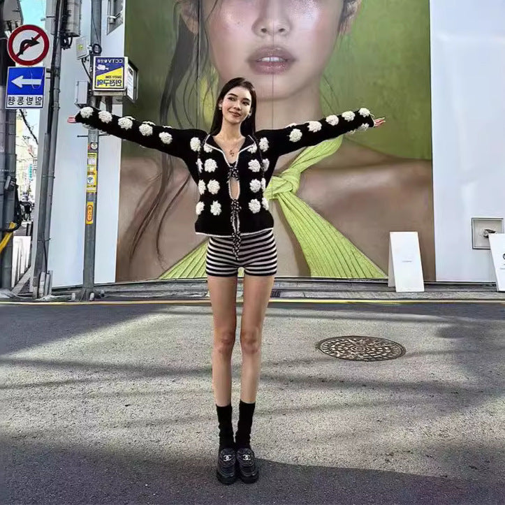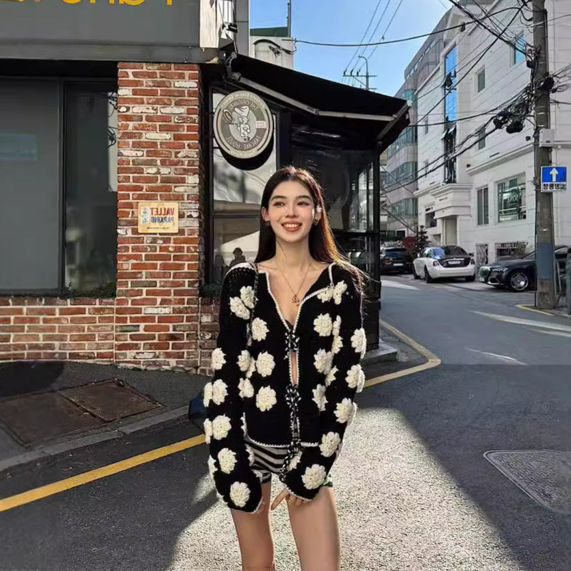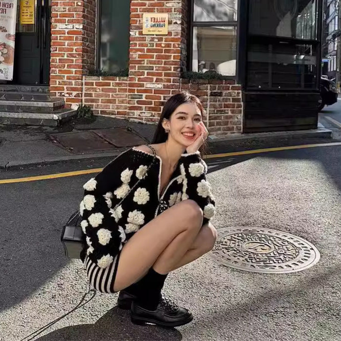 Women's French-style High-grade Heavy-duty Three-dimensional Crocheted Knitted Cardigan