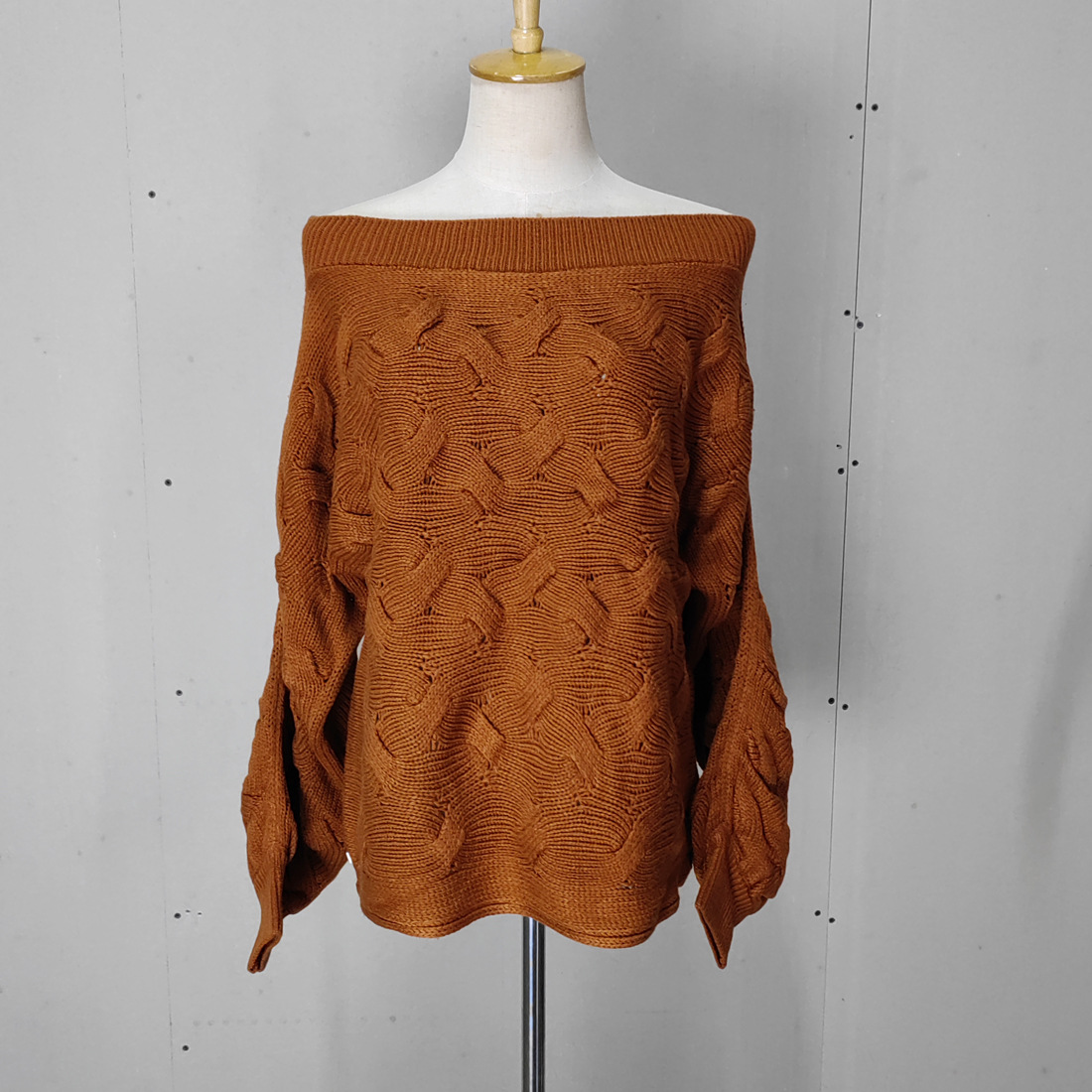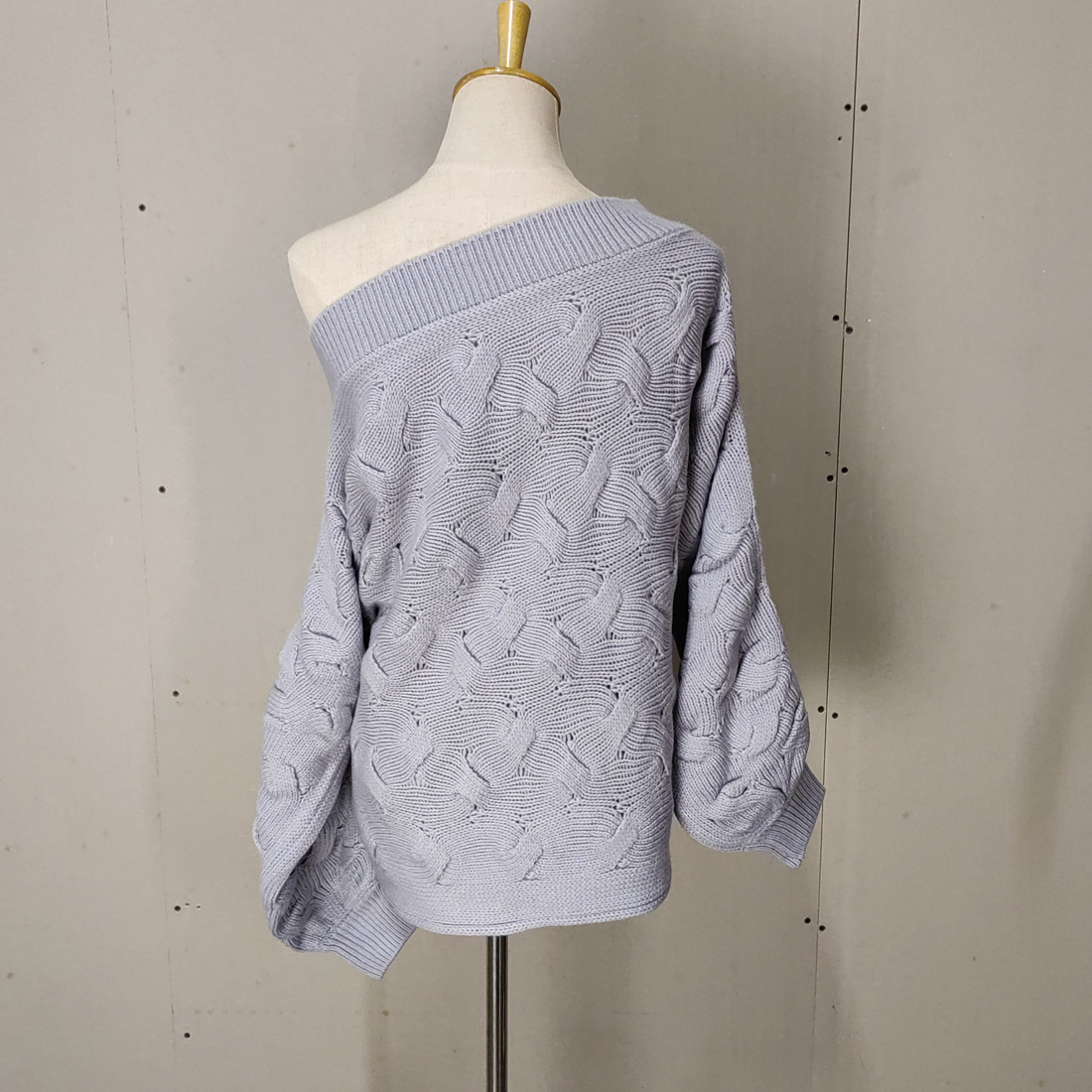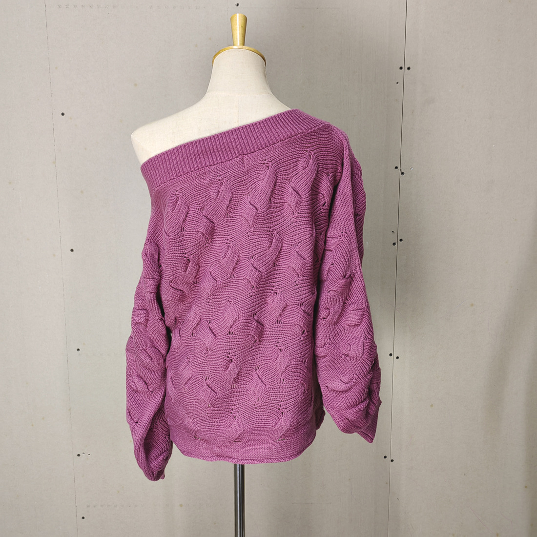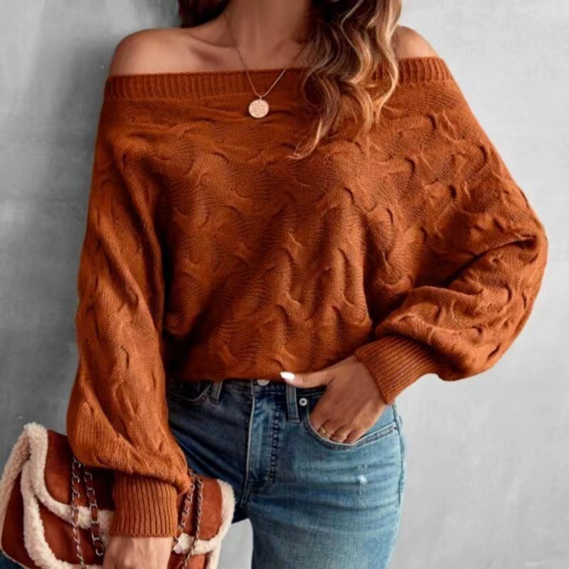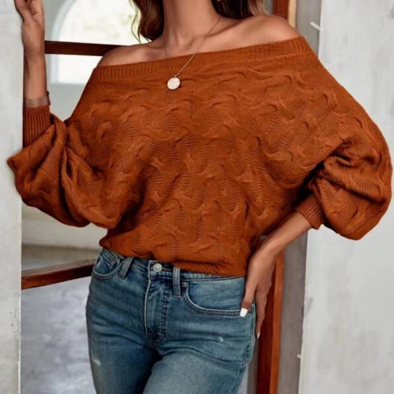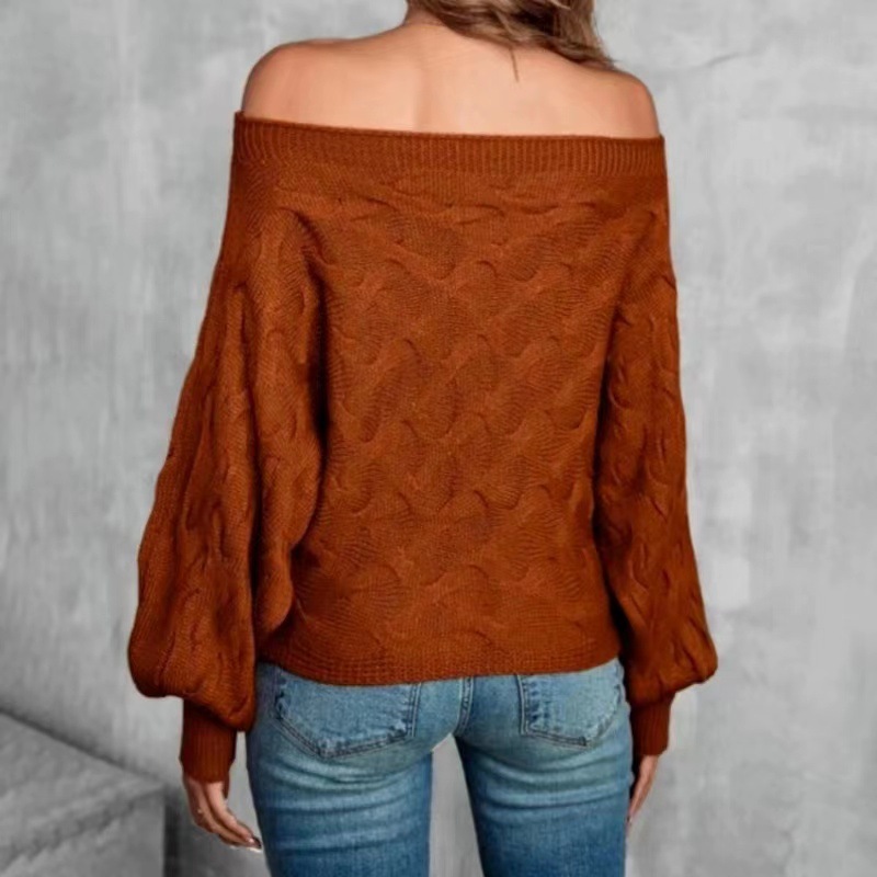 Women's Off-shoulder Twist Knitted Sweater Lantern Long Sleeve Loose Bat Pullover