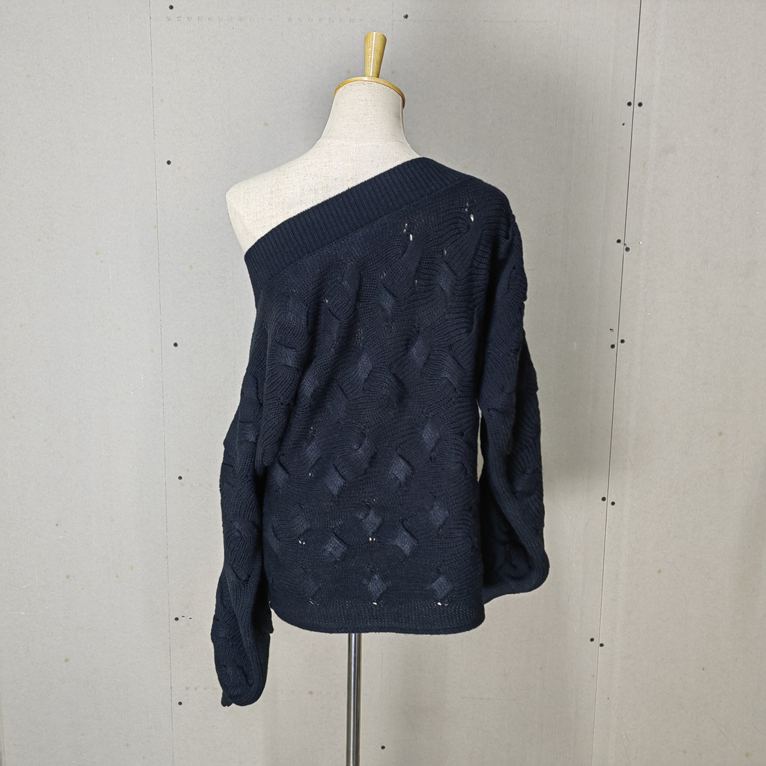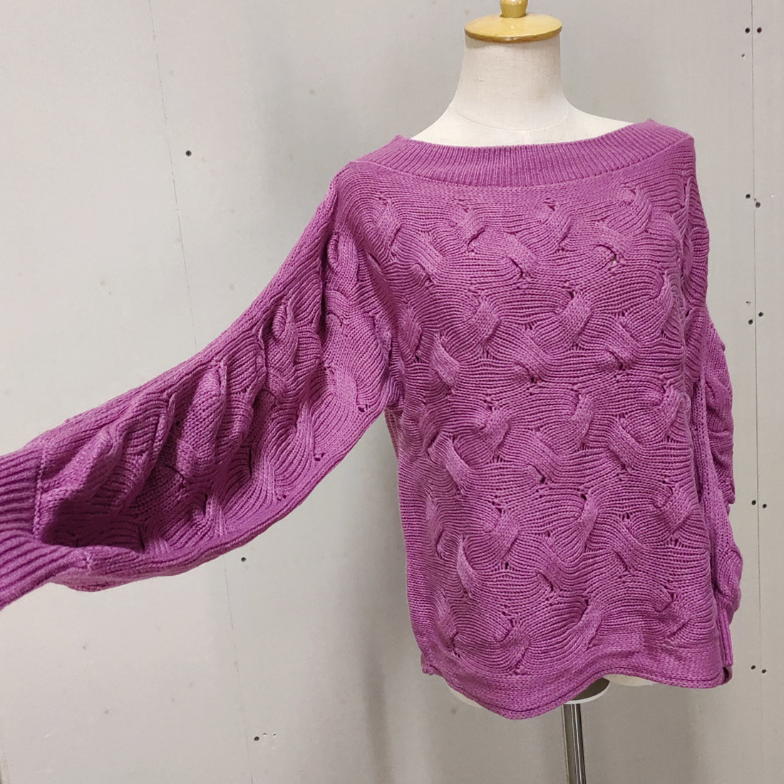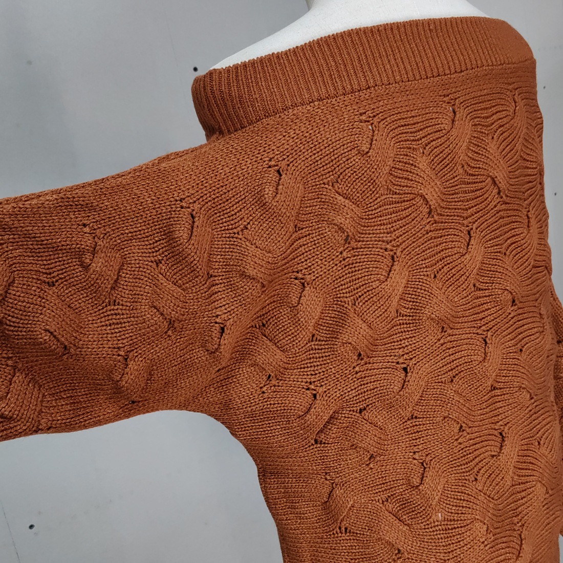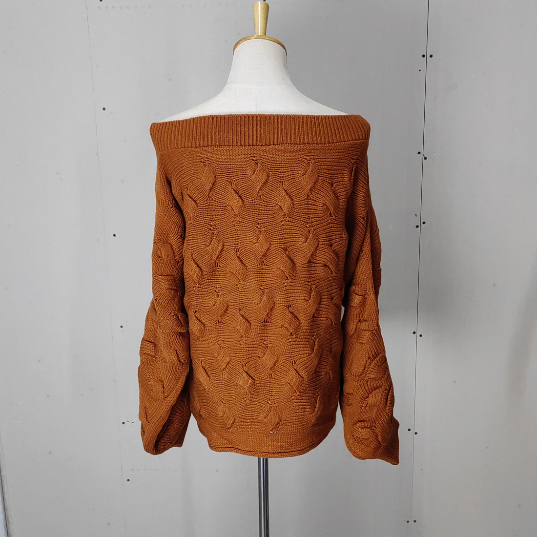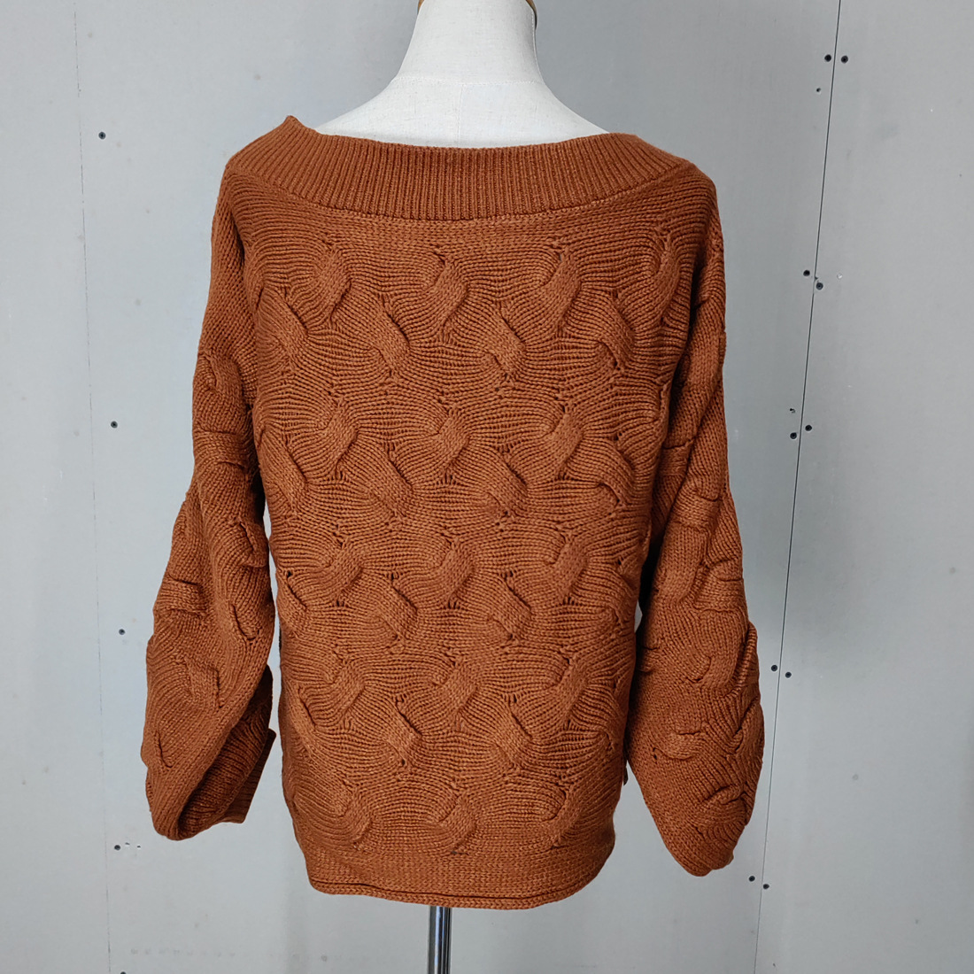 Women's Off-shoulder Twist Knitted Sweater Lantern Long Sleeve Loose Bat Pullover