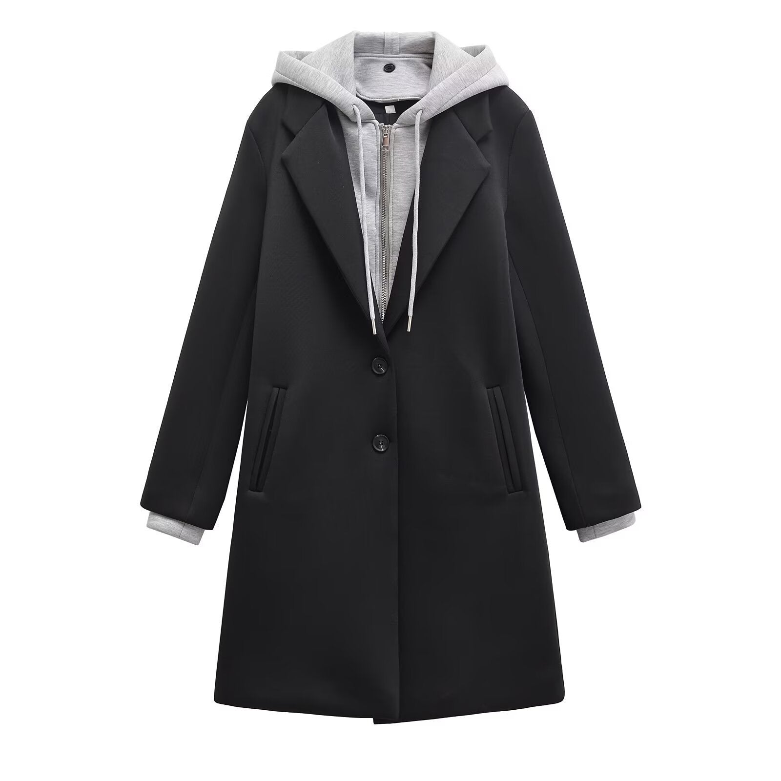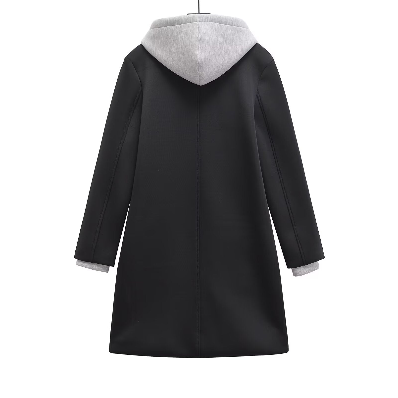 Women's Single-breasted Pocket Long Sleeve Detachable Contrast Color Coat