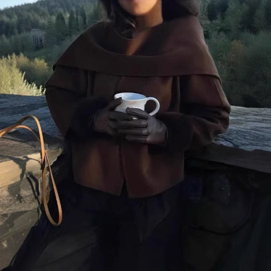 Woolen Coat Lazy And Loose Shawl Comfort And Casual Eye-catching Solid Color Coat